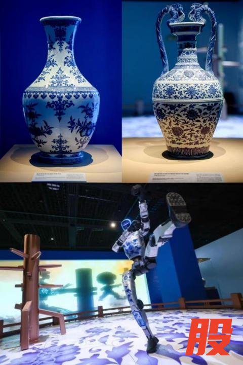 不同于文物与IP的简单叠加,这场艺术秀真正让古今实现了“双向对话”。在“玉见未来”展区,四千多年前的“玉神人”经潮流转译,化作戴未来感冠帽的“周同学”巨像投影,静静诉说中国玉石之美;“青铜跨时代”里,大克鼎的纹路被融入铠甲设计,“青铜卫士周同学”守护着文化宝藏,10000张古钱币造型的数字收藏卡,串联起古今对富足生活的共同向往;“青花武馆”中,上海博物馆馆藏的景德镇窑青花缠枝莲纹双耳瓶、青花折枝山茶纹扁壶悉数亮相,身绘青花纹样的功夫机器人站上擂台,让非遗匠心与科技活力同台绽放;而“粉彩浪漫”展区则紧扣周杰伦钟爱的粉色,聚焦清代乾隆年间的粉彩堆塑婴戏瓶、粉彩莲纹盖碗,让观众在柔美感中对话古人的浪漫。