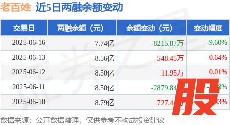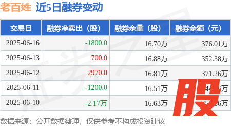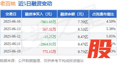 本站消息寻牛堂,6月16日,老百姓(603883)融资买入1.59亿元,融资偿还2.37亿元,融资净卖出7861.69万元,融资余额7.7亿元,近20个交易日中有11个交易日出现融资净买入。
