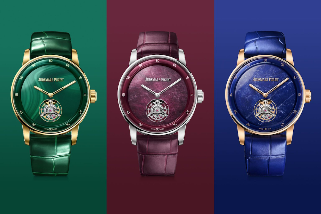 与此同时,作为150周年纪念的一部分,爱彼推出了三款彩色矿物宝石表盘CODE 11.59陀飞轮限量作品。