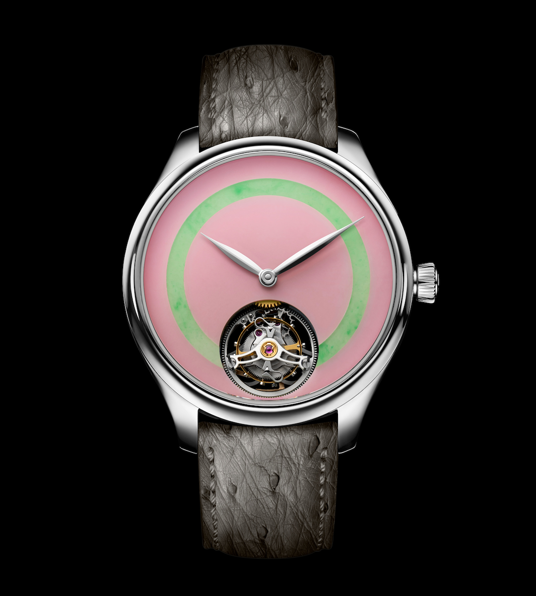 加工矿物宝石表盘费时费力,不管是亨利慕时Pop系列,还是爱彼CODE 11.59陀飞轮,都是限量制作。因此彩色矿物宝石既凸显了稀缺性,同时也成为了“彩虹盘”的一类特殊符号。